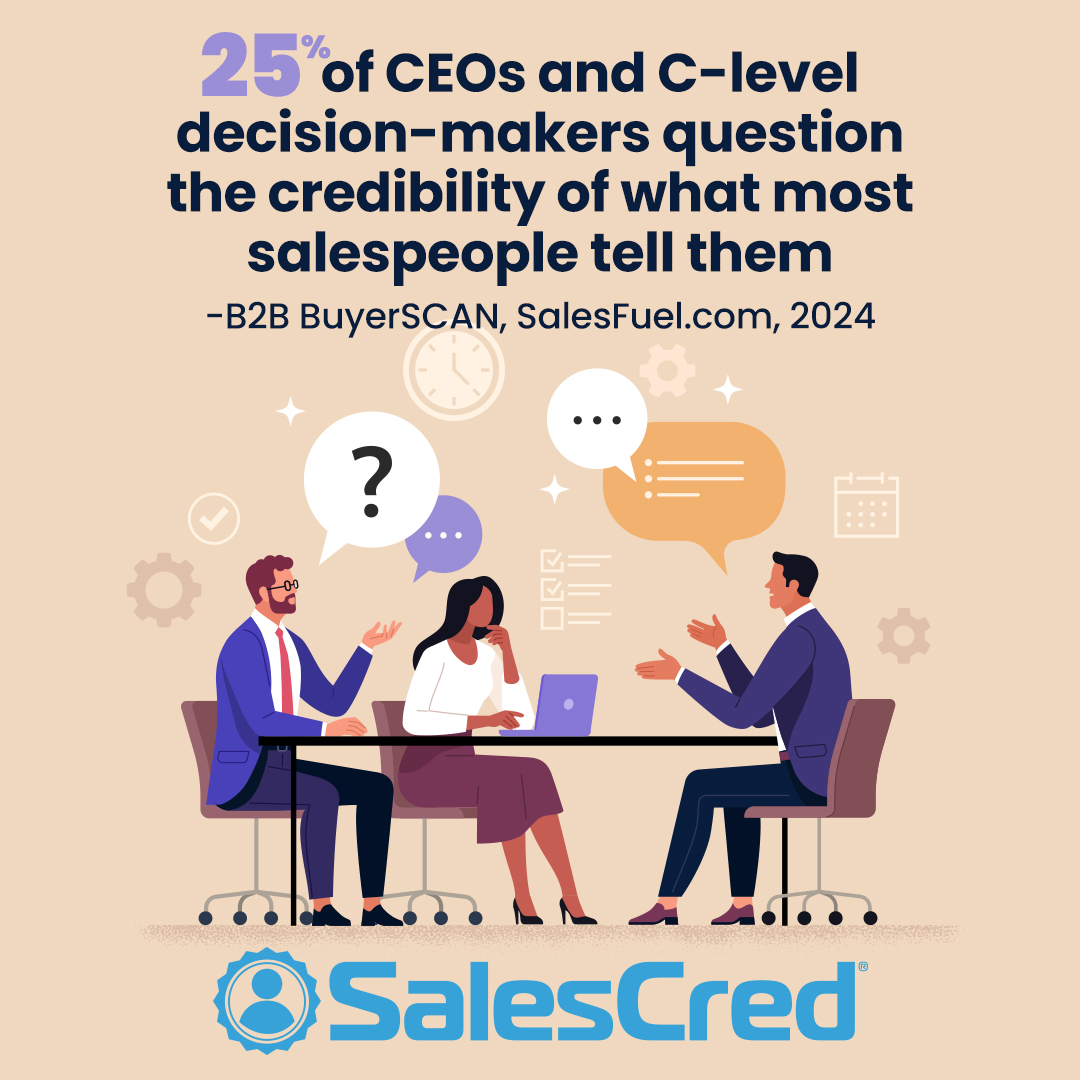 Before salespeople can be thought of as 'trusted advisors,' they first must have a high level of sales credibility. Credible salespeople are believed to know what they're talking about, and know how to help solve business problems or achieve goals. They gain greater access to the top decision-makers and sensitive business information needed to close deals.